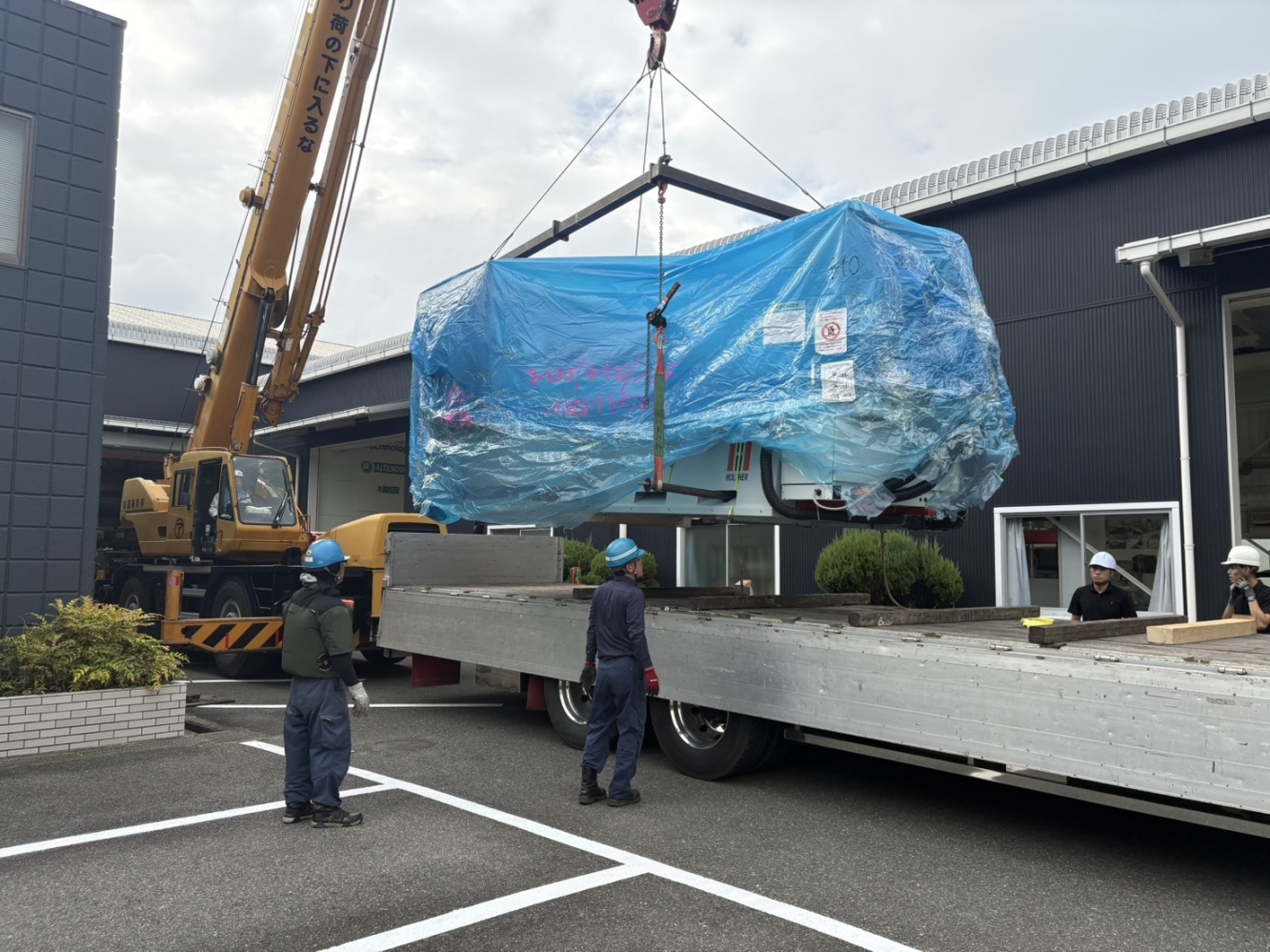 弊社は運送と設置どちらも併せての対応が可能です。 大きな重機であっても、弊社にはクレーン車と専門の作業員が在籍しておりますので、運び出しから再設置までお任せください。 下記ギャラリーでは、これまでの施工例を紹介しています。