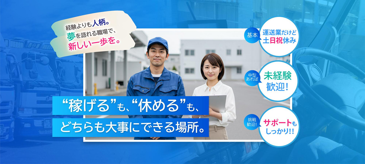 ※大型免許がない場合は会社が半分負担で取得可能(半年勤務を条件とする) |